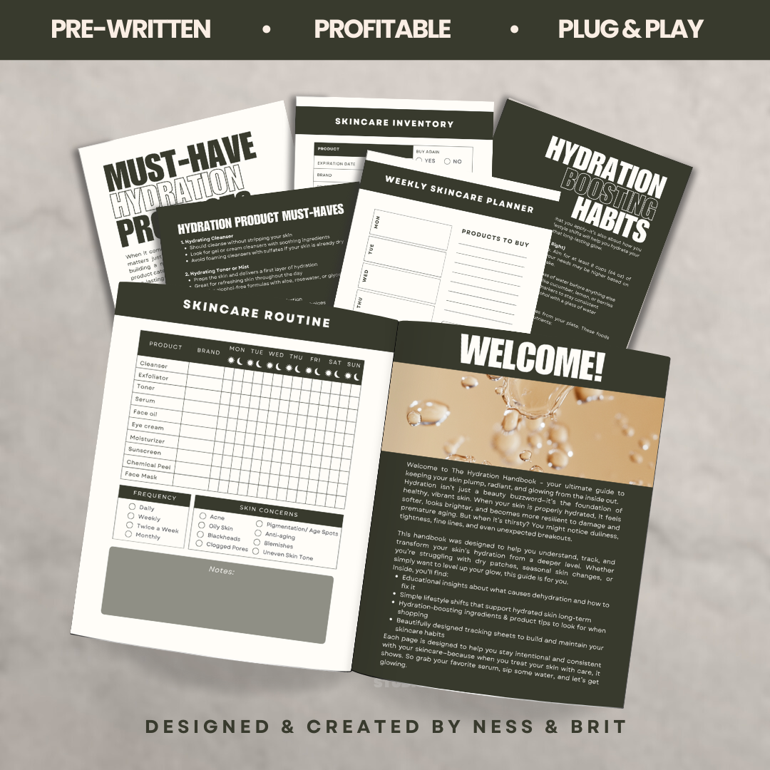 The Hydration Handbook is a beautifully designed digital guide that teaches you how to properly hydrate your skin from the inside out. This handbook helps you understand what dehydration really is, how to recognize it, and how to build habits that restore and maintain healthy, glowing skin.